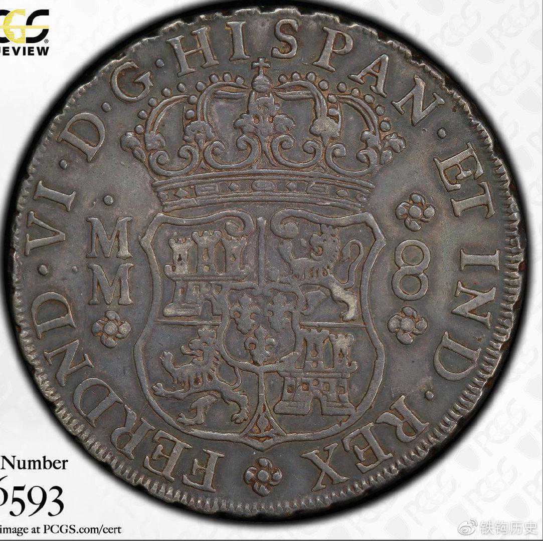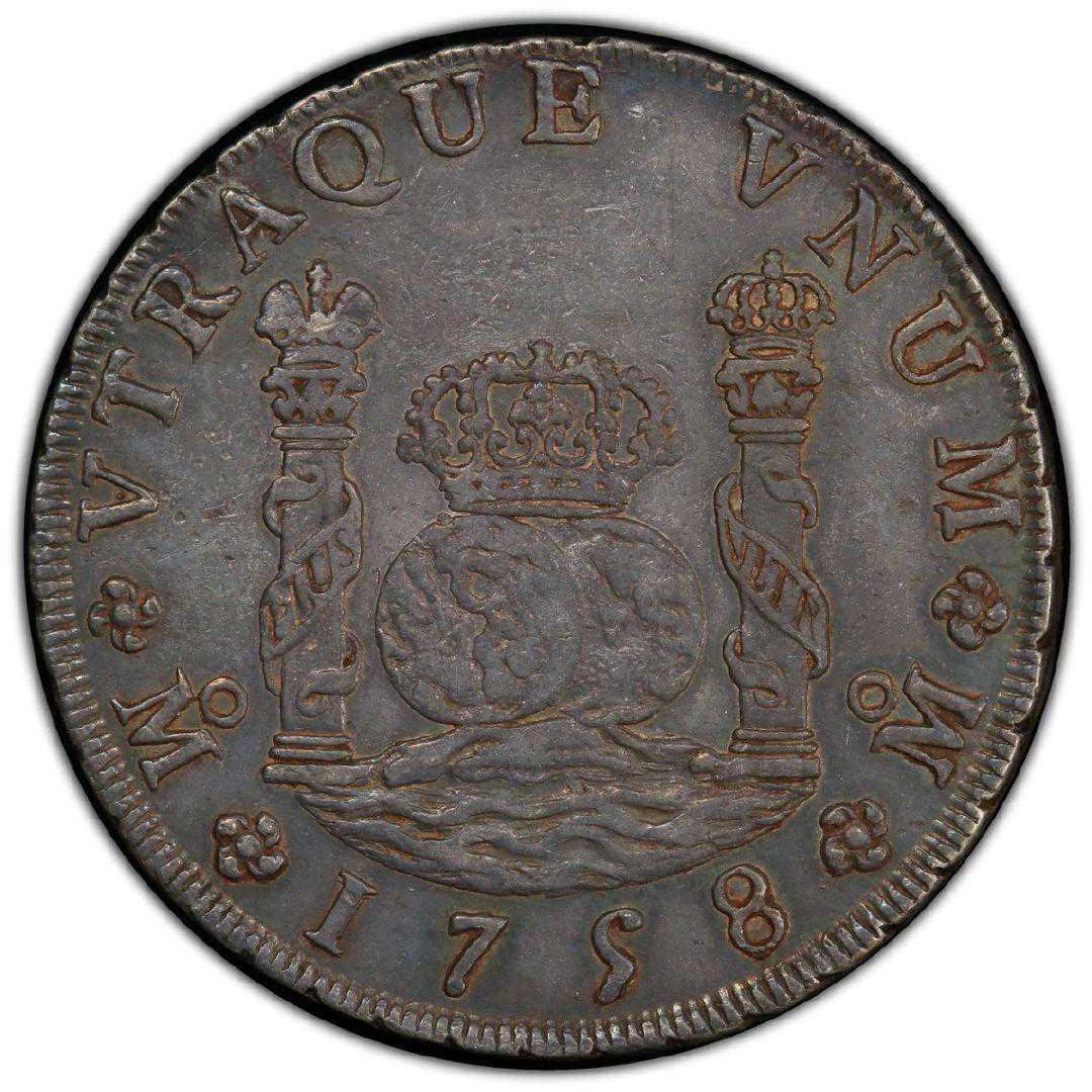 1749年西班牙属秘鲁制造的8里尔“地球双柱”银元