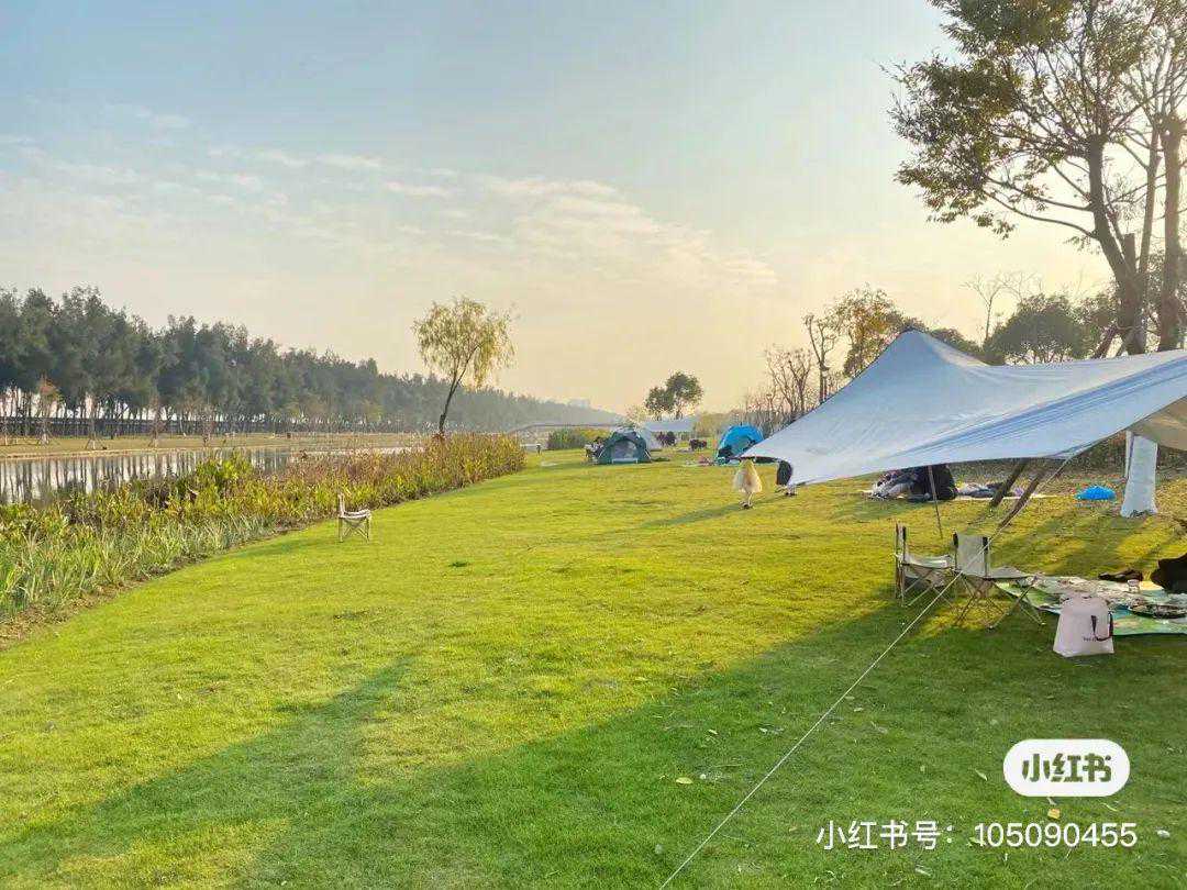 公园草坪和塘下林地内都是大家露营的优选之地,在这享受午后阳光,听鸟鸣阵阵,实在惬意。