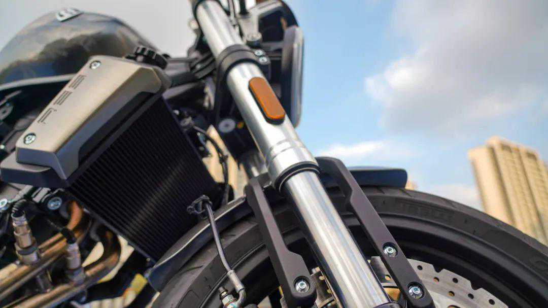 上置多连杆中央后减震具备15段阻尼可调功能,在舒适性与运动性方面都会有更好的表现。同时,RE560所搭载的铝合金后平叉也能进一步降低车辆后轮的簧下质量,提升车辆操控性,与“性能复古”不谋而合。前120-70-17,后160-60-17配倍耐力子午线轮胎。
