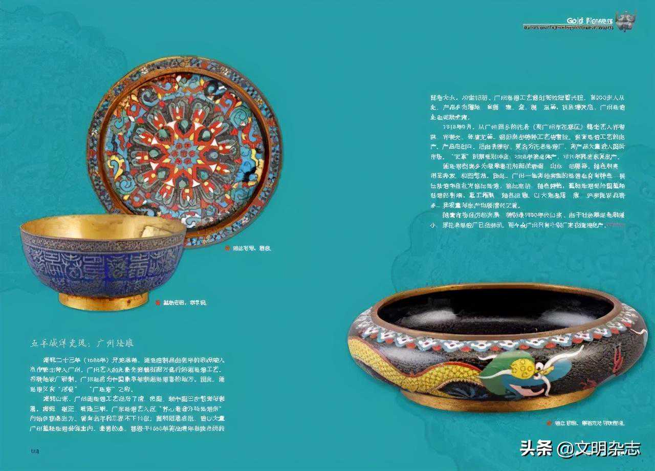黄金般的华丽和宝石般的绚丽珐琅工艺的种类珐琅又称佛郎、拂郎、发蓝,是用石英、长石、硝石和碳酸钠等加上铅和锡的氧化物烧制成像釉子一样的物质,涂在铜质或银质器物上,经过烧制,形成不同颜色的釉质表面,因而是一种集金属制作与珐琅釉料加工处理为一体的复合性工艺制品,含冶金、铸造、绘画、窑业、雕、錾、锤等多种工艺,既具备金属贵重、坚固的特点,又具备珐琅釉料晶莹剔透、颜色多彩的特色,有着黄金般的华贵和宝石般的绚丽,历来是宫廷贵族御用爱赏之物。