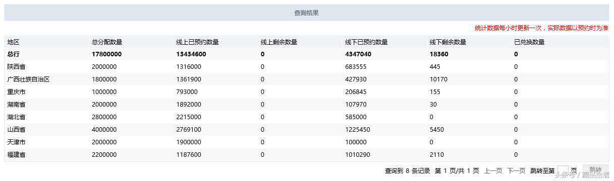 小编注意到,仅针对线上预约来说,中行、工行和建行都已经没有了可预约数量(建行那点可以忽略不计),仅有部分省份的线下预约数量仍有大批量可以供预约,但还是有很多省份线下预约渠道的数量也已经和线上一样早已一个不剩。