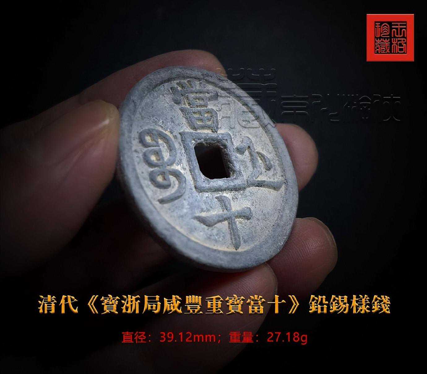钱币收藏界前辈,如马定祥先生等早年均见并议论过咸丰铅锡钱,称其“精美无比”。愚有幸猎获到多局多枚等值不等的咸丰铅锡雕祖样或者样钱,长期未曾披露,现在已经逐步开始公开展赏。是故,今日赏泉,特将帐中所藏这枚“宝浙局咸丰重宝当十铅锡样钱”点选出列,拍照亮相,首次披露于此,实物实证,以飨泉界泉好。