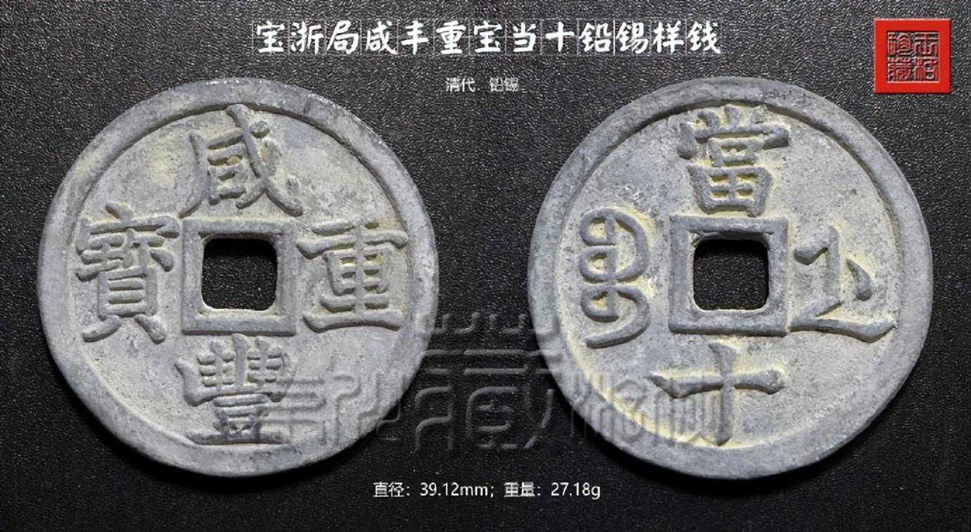如是,一番鉴赏审视,此枚“宝浙局咸丰重宝当十铅锡样钱”,三相一材,纯真无邪,实乃开门见山之品,毋容置疑。迄今为止,仅以愚之眼界耳域所及,广为检索,无论真伪,均未见有此铅锡样钱公展于世,可谓极其罕见。因此,其尽管为铅锡材质,然而似可谓仅以枚计的珍罕之品。它的存世以及具有如此好的完整品相,堪称难能可贵,其不仅具有重要的研究价值,亦有相对较高的收藏价值,值得我们收藏珍惜矣。