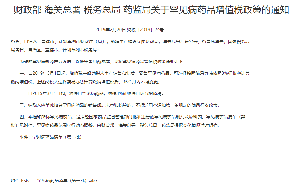 罕见病药品,参照财税号〔2019〕24号罕见病药品清单,归类税号01030300,税率为3%。