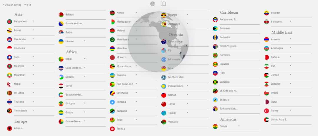 互免签证国/地区:塞舌尔、毛里求斯、巴哈马、斐济、圣马力诺、格林纳达、厄瓜多尔、汤加、塞尔维亚、巴巴多斯、波黑、阿联酋、白俄罗斯、卡塔尔、伊朗、斯里兰卡(8月1日起)