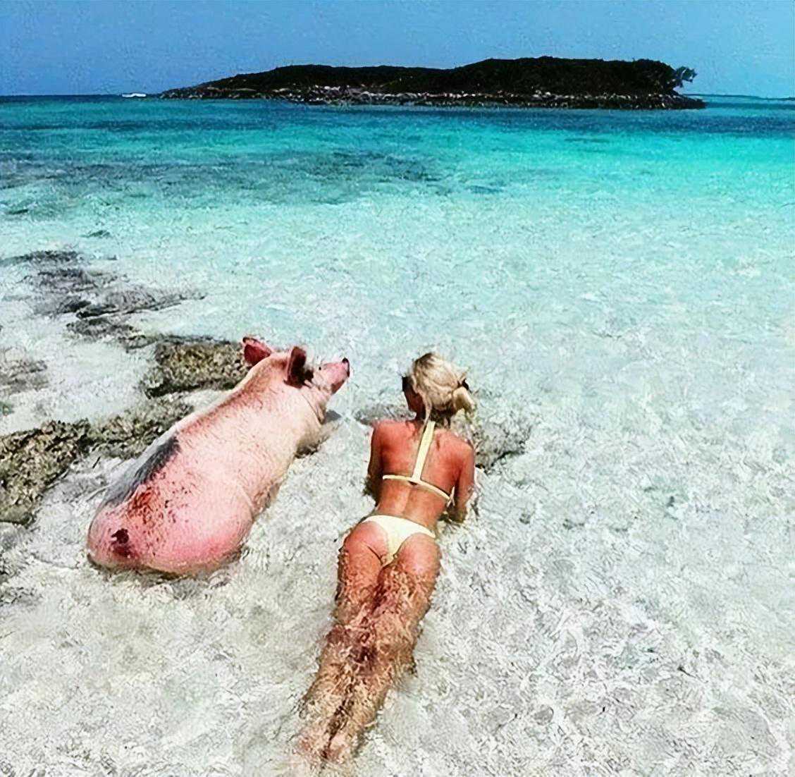 在巴哈马的猪岛,和二师兄一起游泳、晒太阳,时不时再接受一下它们的撒娇。