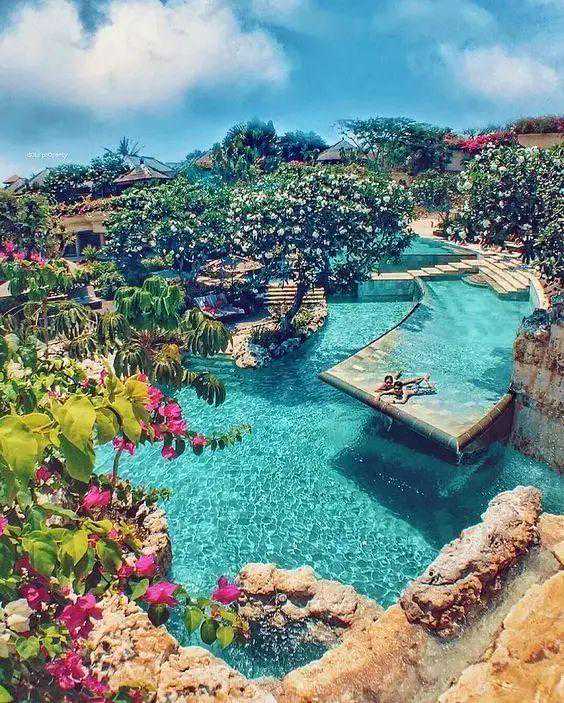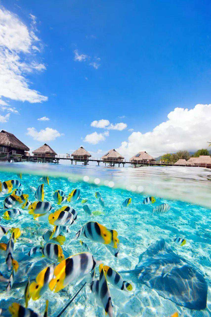 那里的海有七种颜色,海底的鱼群多的数不清,可以和水母共舞,也可以和鲨鱼一起遨游。