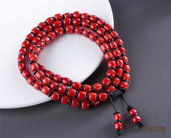 沙丁珊瑚颜色类似阿卡,常见橘色、橘红、朱红、正红、深红,但是能达到阿卡珊瑚最深的颜色,也就是红的完全发黑的,基本上见不到。但因为沙丁基本上没有白芯和压力纹,是最适合做圆珠的材料。