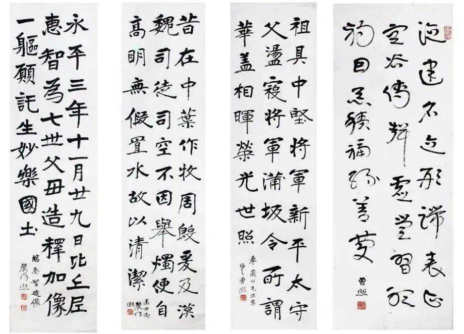 展厅中,曾熙1921年为弟子蒋国榜母亲六十寿辰而作的《蒋母马太夫人六十寿序》六条屏,以《张黑女墓志》笔意写就,温润清雅,笔墨皆精,堪称曾熙楷书代表作品之一。