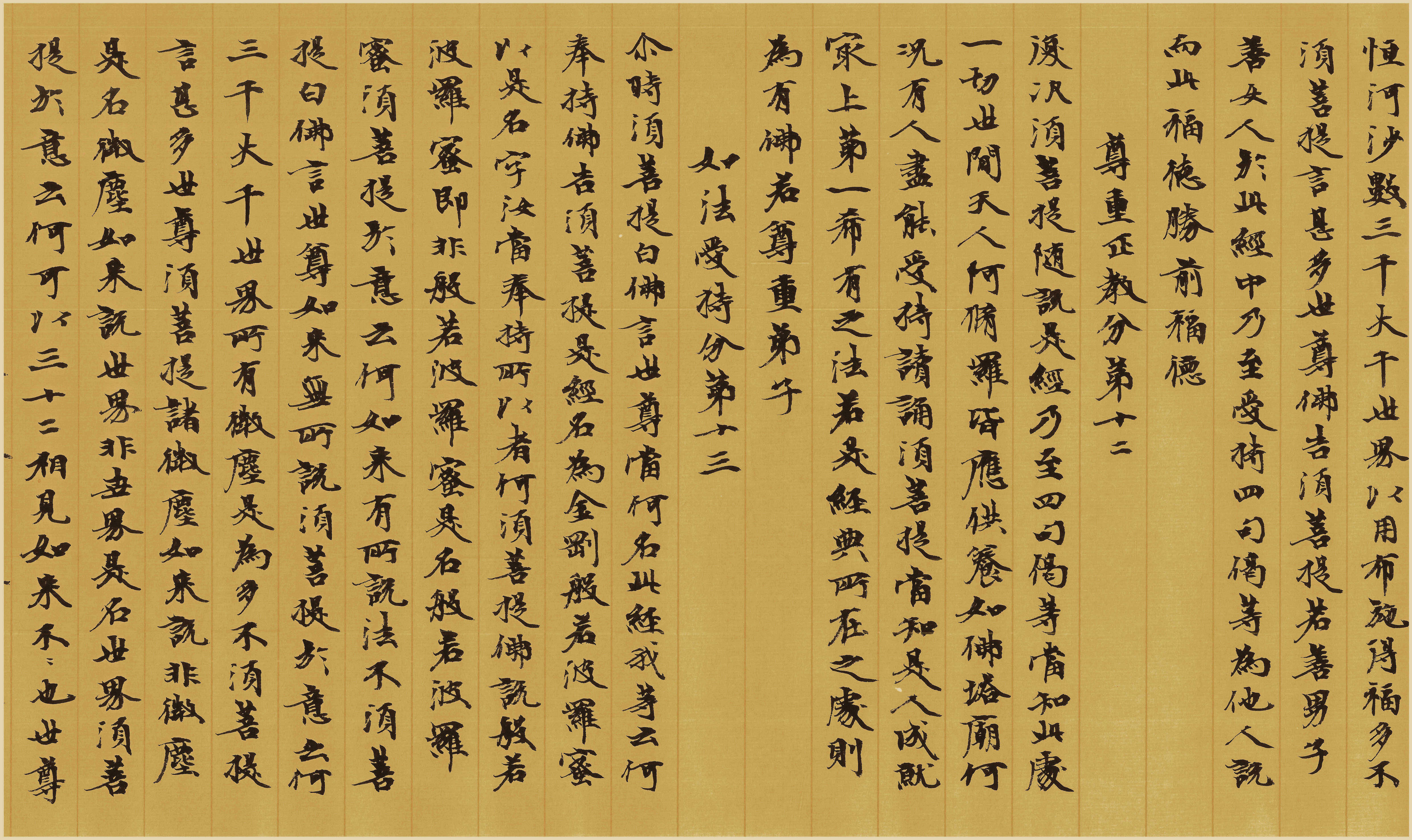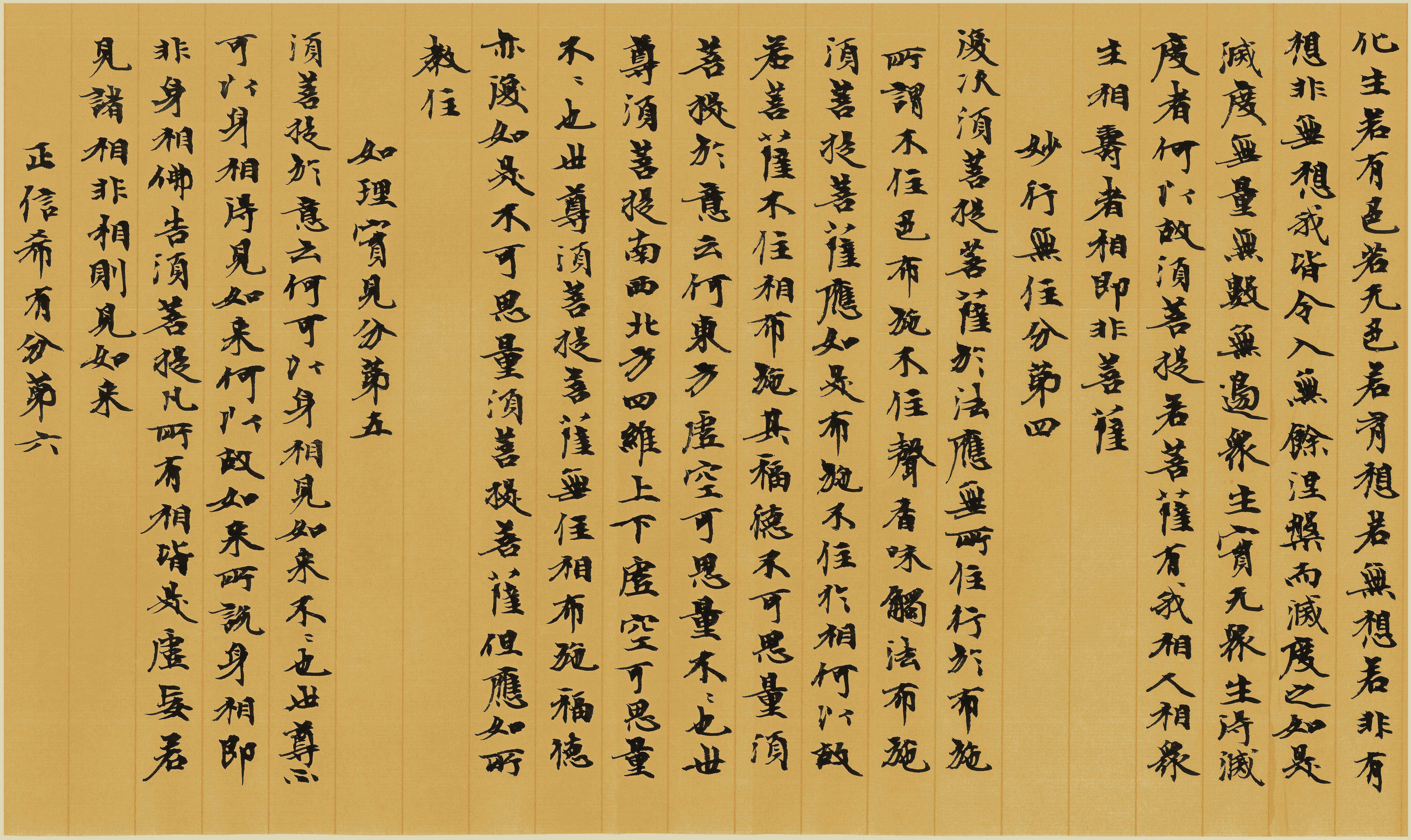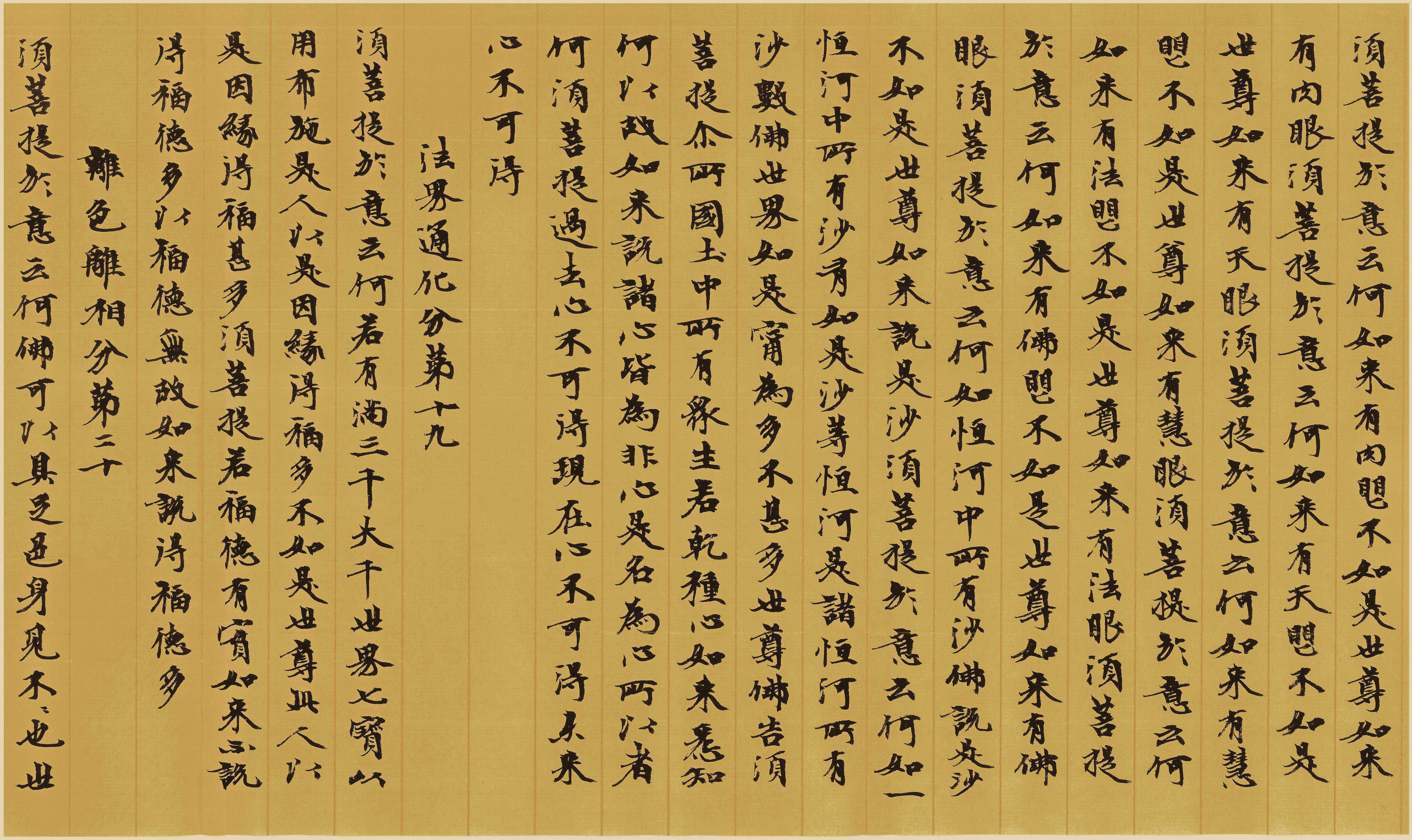 若从后者讲:据我的了解,从柳公权算至清代康熙、雍正,中间有苏东坡、赵孟頫,董其昌、傅山等他们抄写的经卷(金刚经》却非常令人失望,虽然他们本人无一不是当时的书法大腕,但遗憾的是,他们有个共同点就是:把经当书法写了?我现在所呈现的,但愿能在这两端之间,无所偏倚,却有所灵化!