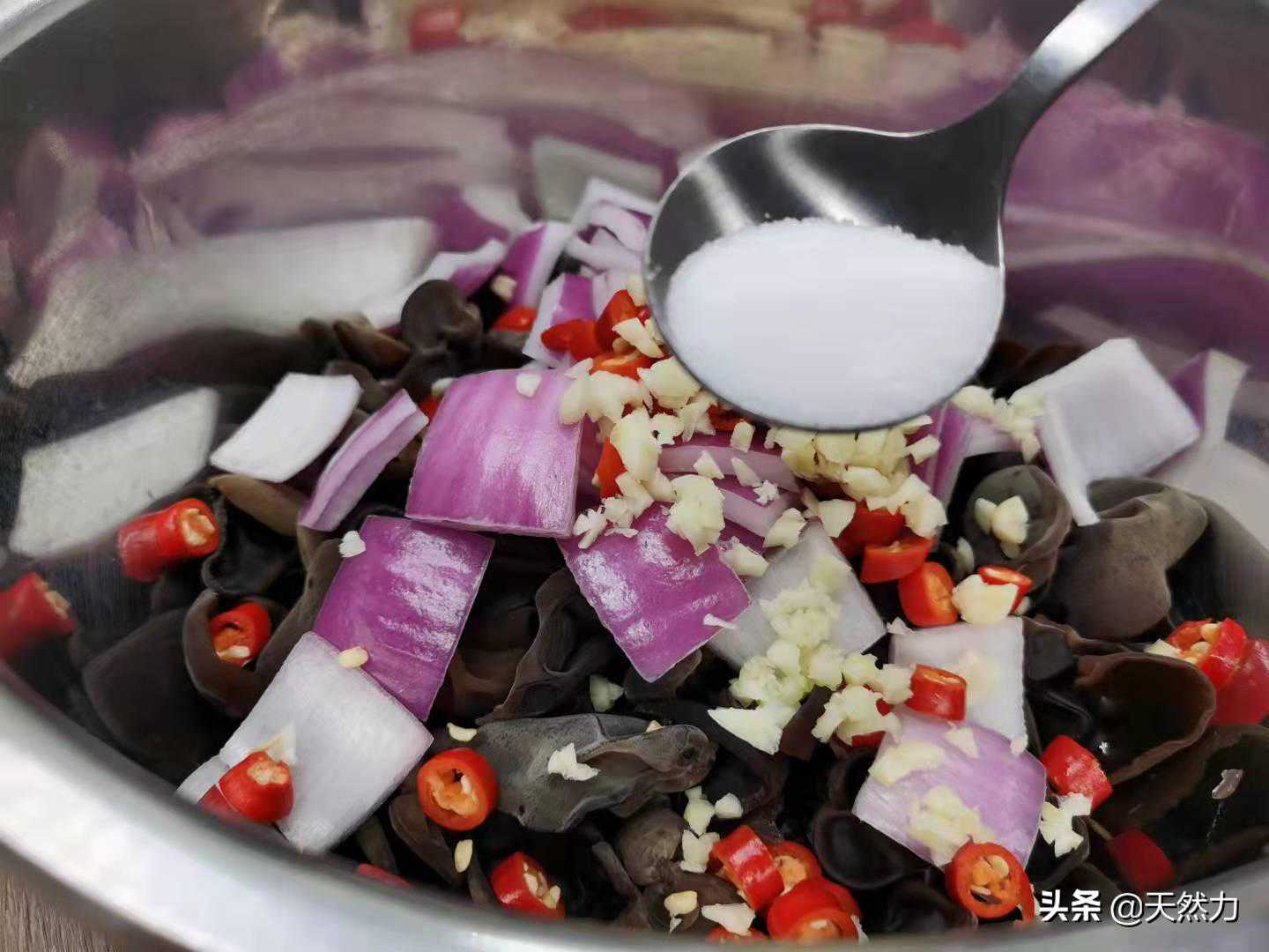 13、加适量的盐增加底味。