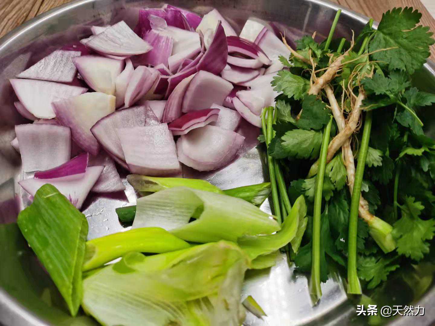 1、香菜、洋葱都不要的边角料,大葱也是昨天剩下没用的,这些都可以用上,一点都不会浪费,我们来一个变废为宝,这也是洋葱拌木耳好吃的一个重要环节。