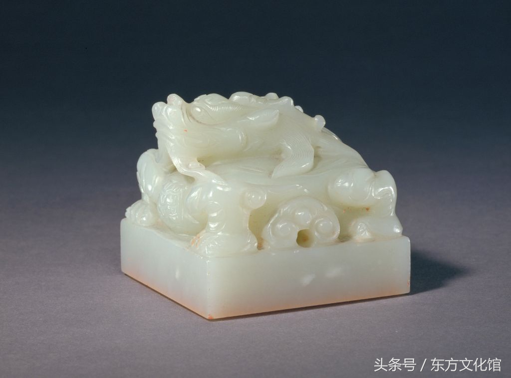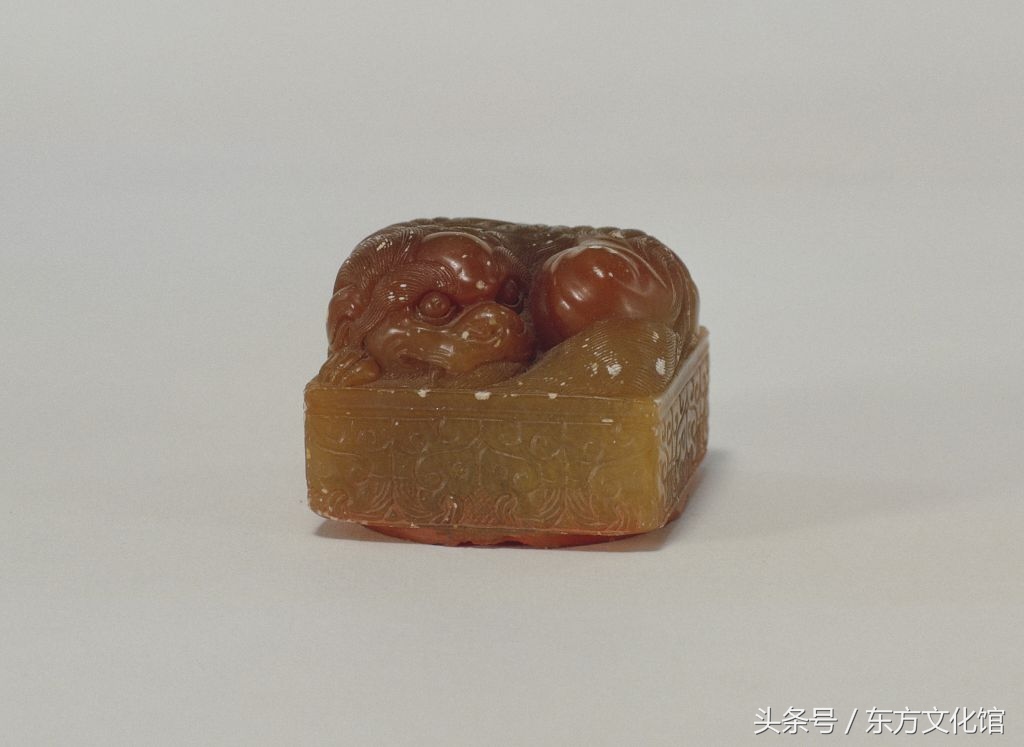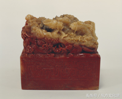 “乾隆敕命之宝”,清乾隆,寿山石质,螭纽方形玺,汉文篆书。面13.3cm见方,通高13.4cm,纽高5cm。