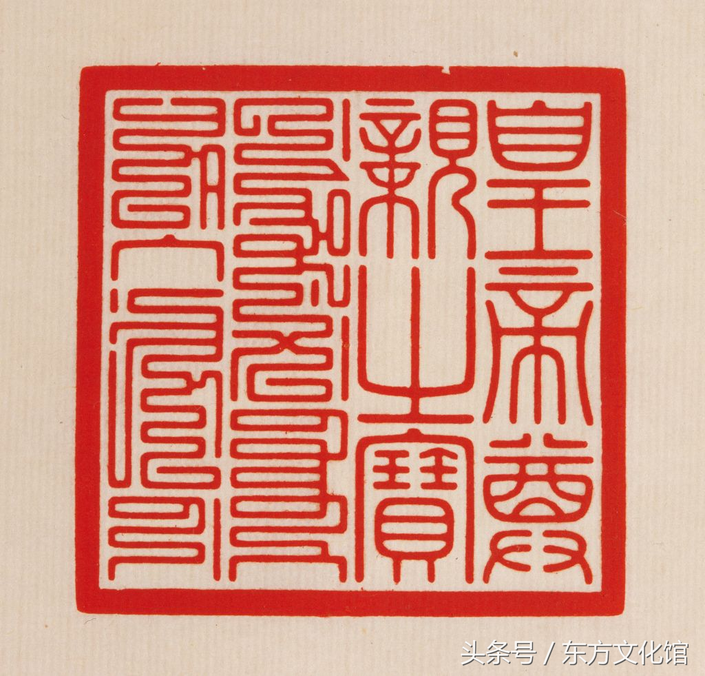 乾隆帝钦定二十五宝之一,是清代二十五宝之中唯一的一方木质宝玺。据《交泰殿宝谱》,此宝为“以肃法驾”之象征物,故凡清帝行围及驻跸圆明园或避暑山庄时,都要以这方“皇帝之宝”随驾。此外通过对清代皇帝诏令文书中宝玺使用状况的统计分析表明,二十五宝中用得最频繁、范围最广的也是这方木质“皇帝之宝”,诸如皇帝登基、皇后册命、皇帝大婚、发布殿试金榜及其他重要诏书上均钤用此宝。可以说此宝是清朝皇权的重要标志,具有极高的历史价值。