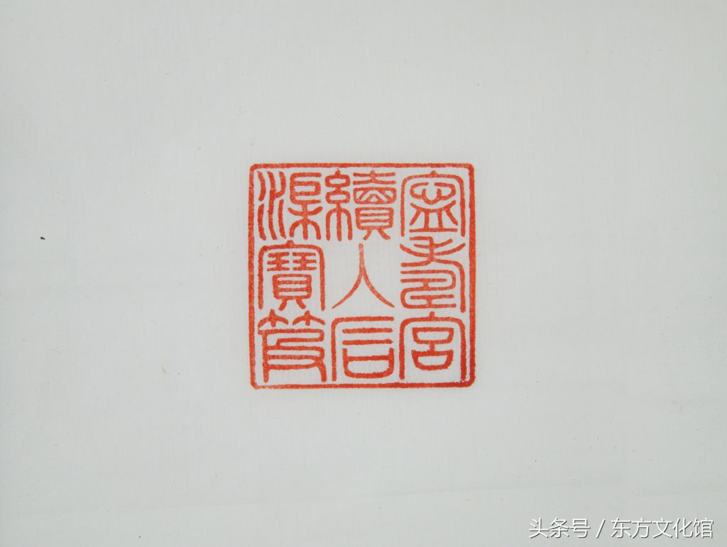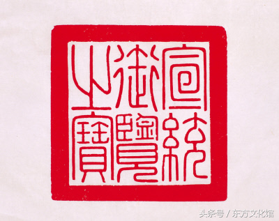 《宣统宝谱》录“宣统御览之宝”共4方,印文大小尺寸不等。这是其中较大的一方,曾钤于溥仪御览过的字画上。