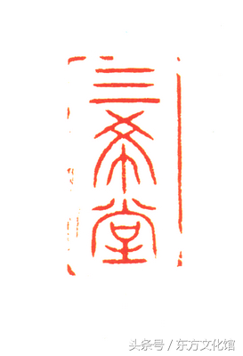 “同道堂、御赏”玺,清咸丰,二方一组,共装于一黑漆盒内。其中“同道堂”玺,青田石质,光素,篆书。面2cm见方,通高8cm。“御赏”玺,田黄石质,光素,篆书。面宽1cm,长2cm,通高5cm。