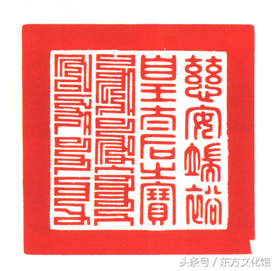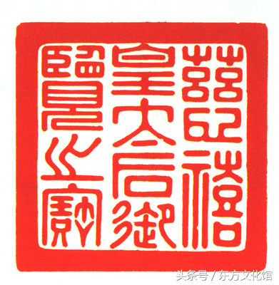 皇后之宝,通高10cm,纽高6cm,印面14×14cm,重1800g。