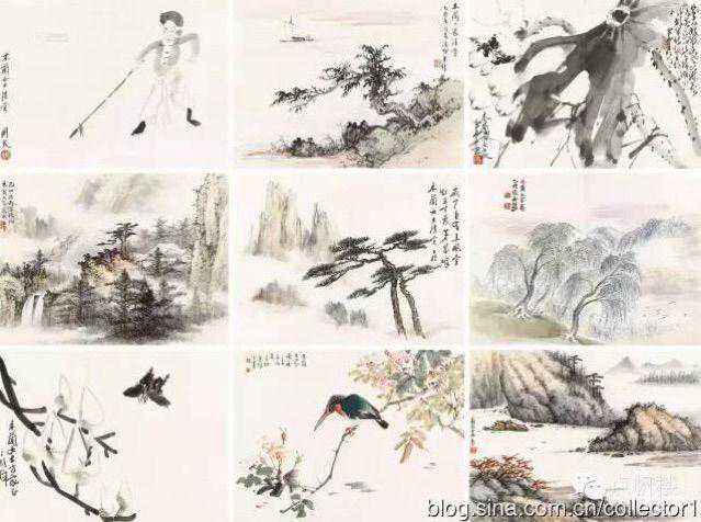 筹办王石岑艺术馆的过程也是一探索王石岑艺术道路的心路过程。最近整理资料一段纪载王石岑在抗战时期生活在重庆的点滴;下面这一册页是为国民党元老胡汉民的爱女胡木兰所作,九幅画是当时画坛上非常活跃的九位画家所作:关良,赵少昂,黄君璧,王石岑,许士骐,张虹(张谷雏),丁衍庸,周千秋,王商一,九名画家中,除王石岑,许士骐是安徽籍外,其他几位均为岭南人,且互为师友。此本册页作于1945年抗战未年,春夏交际之时。画面呈现出来的岁月静好和壮丽山河,让画家们暂时忘记了现实的战乱纷纷和国破家亡,也寄托了他们对美好和平生活的憧憬,更是特殊时期画家之间,画家和受画人之间的交往和友情见证。同时也见证了王石岑早年的艺术成就。