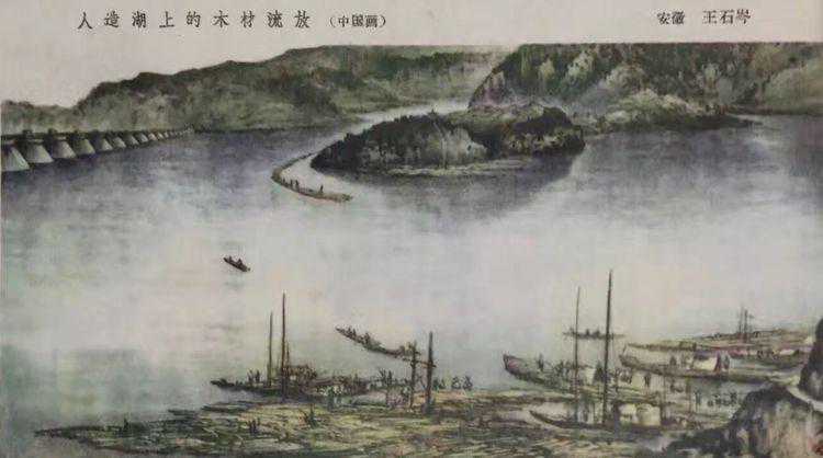 如在石岑图画中。王石岑早年作品《人造湖上的木材流放》曾刊登于中国巜美术》。杨岸森先生游佛子岭水库有感,留下此佳句,并找出当年王石岑创作此画时的地方。此画现收藏在中国美术馆。