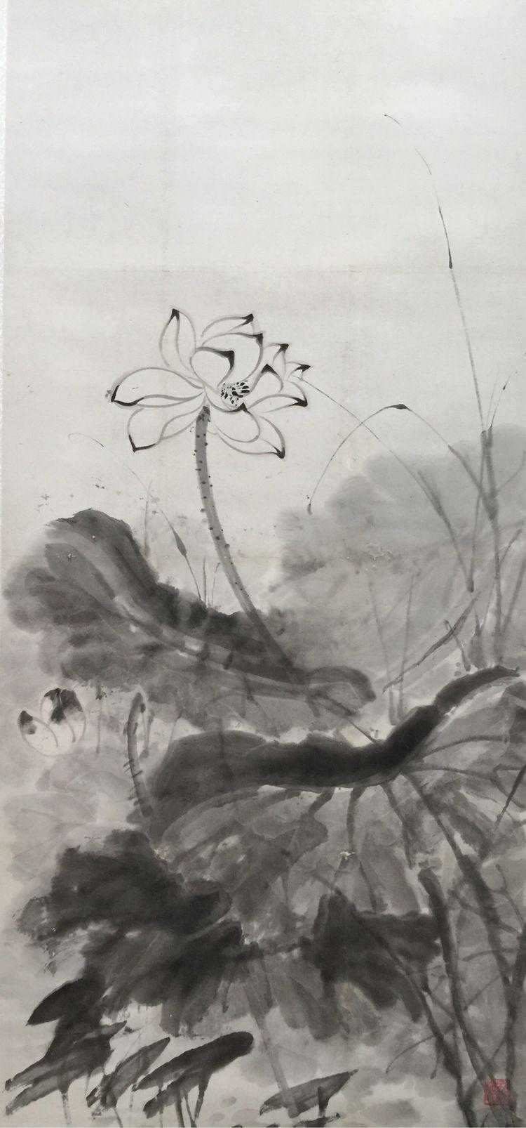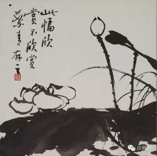 那时候出门交通不方便,到女儿家做客还要赶时间回校。因为时间紧就画一幅小品赠于孩子们。老人还再三解释(清水芙蓉)(春水船如天上座)。