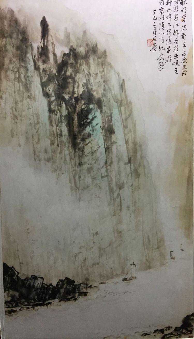 此幅作品是在收到回远方探亲的妻子的来信时高兴而作(巫峡清秋)。