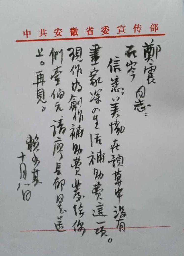 这是赖少其给王石岑、郑震的亲笔信,在那个困难年代时任安徽省委宣传部副部长的赖少奇了解艺术家的疾苦,并及时给予解决。今天我们读来仍然十分感动,