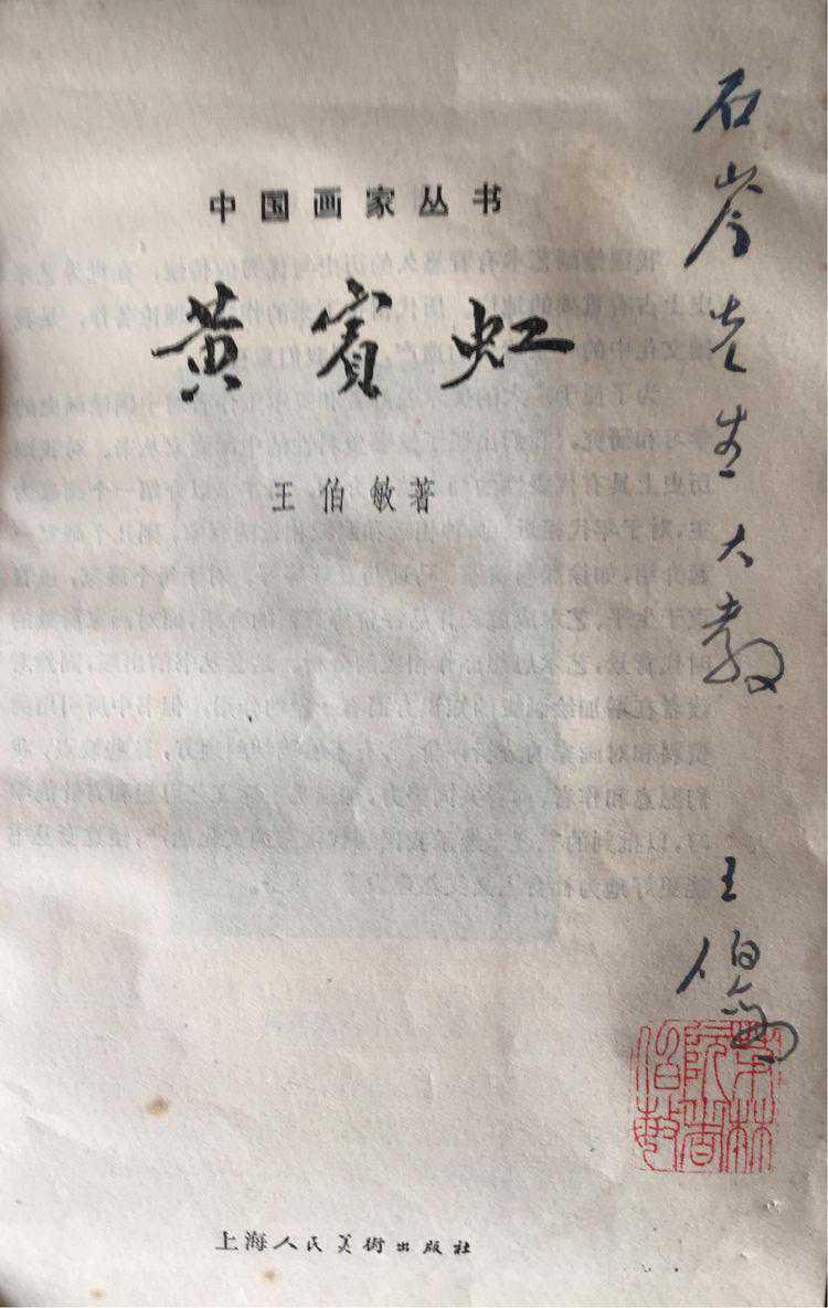 著名美术史论家王伯敏与王石岑相互仰慕,这本论述黃宾虹的专著就是王伯敏赠王石岑的,亲笔签名并盖上印章。