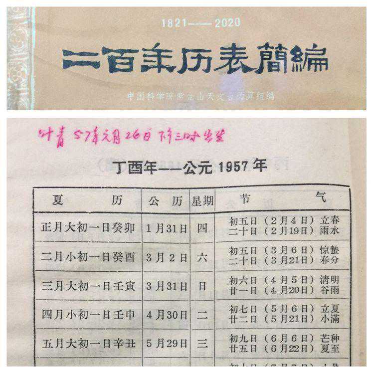 这是一本普通的巜二百年历表简编》,这里面纪下了王石岑人生很多重要的日子、人和事。令我们感动的是这么重要的一个年历简表据然清晰地纪着女儿的生日。