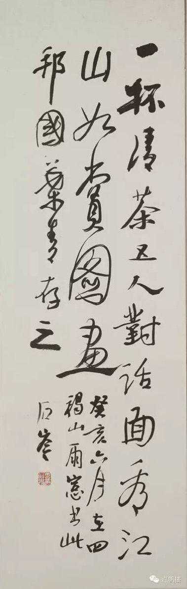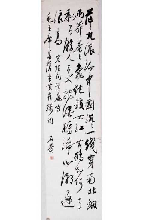 王石岑每次到孩子家做客的时都会带上字画赠送或即兴创作。当时女儿家住在楼上,视野开阔,面对大江能看到天门山,老人一时高兴就创作了(望天门山)。
