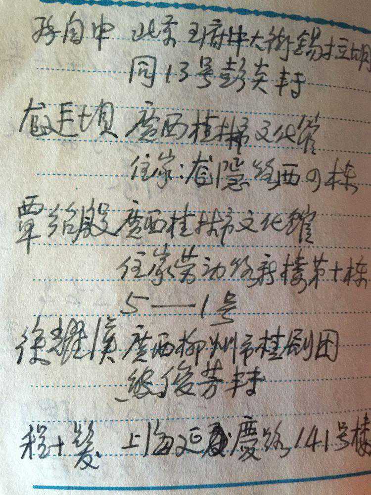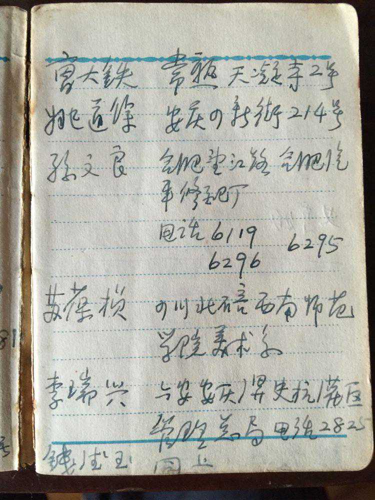 王石岑的社交圈也很丰富,按现在的朋友圈说法也就是朋友众多。这是一本当年王石岑的通讯录,其中纪载了全国很多书画名家的家庭住址、电话、工作单位等信息。这一页纪录的有唐云、钱松岩等人的信息。