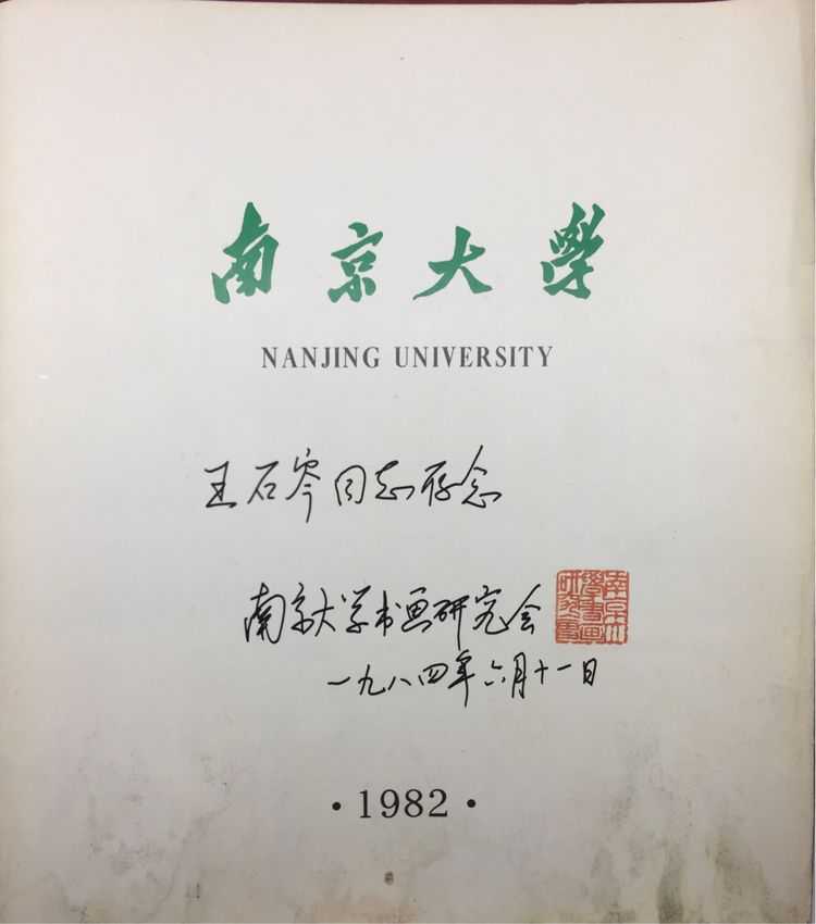 这是南京大学书画研究会赠送王石岑的校庆刊物。由于王石岑在书画方面的影响力,当时国内一些著名大学、博物馆当凡有重大活动必定给王石岑发出通知,收藏其作品。