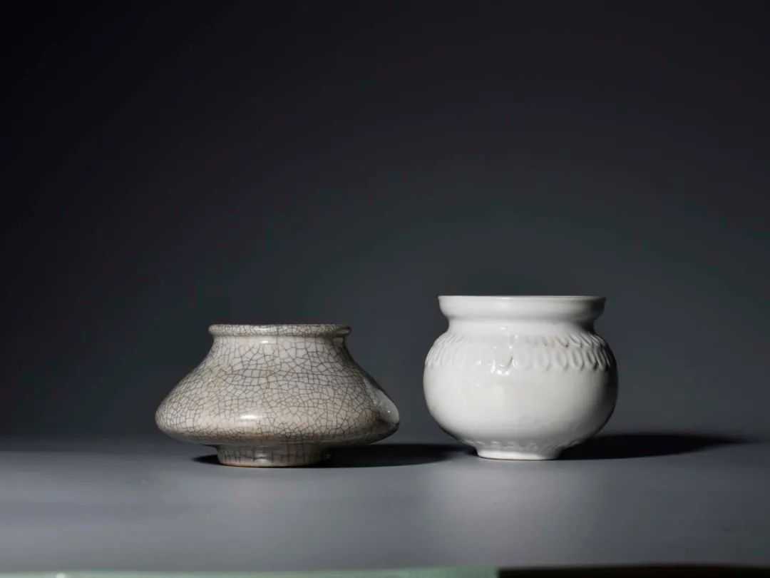白釉器身开片沁色(未透);哥釉水盂一条冲线