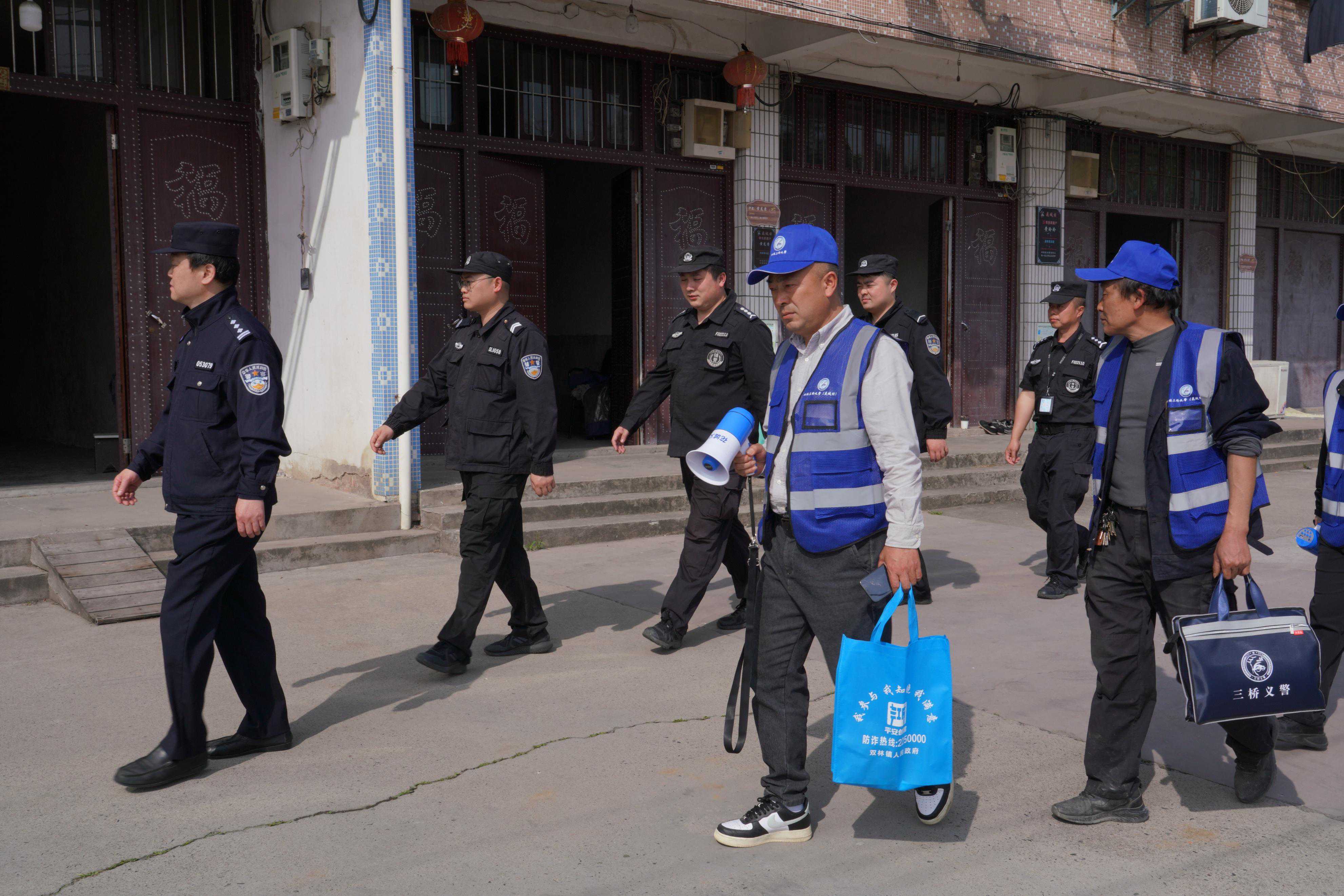 “各位父老乡亲,陌生电话要当心,袋里铜钱要管好;用火用电要注意,消防安全是大事;吃好老酒不开车,骑车上路戴头盔……”启动仪式后,“三桥义警”正式上岗,走村入户开展反诈宣传、交通劝导等,动态掌握村域范围内社会治安整体情况。