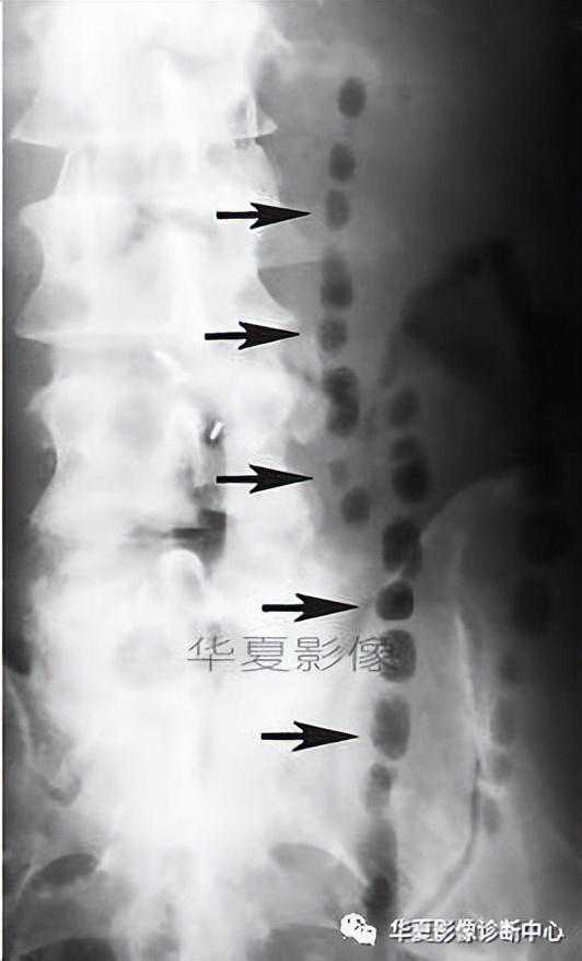 认识珠链征的重要性与小肠梗阻的临床表现有关。小肠梗阻的典塑临床表现有腹部柔软、膨隆和肠鸣音亢进。然而,在某些主要为液体充盈的小肠完全性梗阻患者,由于没有气体产生气过水声,因而小肠扩张可能不明显。肠鸣音可能正常或减弱。然而,立位或侧卧位腹部X线平片仍有可能显示珠链征。了解珠链征这一改要X线表现,有助于避免遗漏临床诊断困难的病例口虽然珠链征在麻痹性肠梗阻、急性胃肠炎和盐水导泻时很少出现。但是当仰卧位腹部X线平片不能确定时,水平位投照显示的珠链征可以提示小肠梗阻,结合典型的临床症状。仍可确定小肠梗阻的诊断。