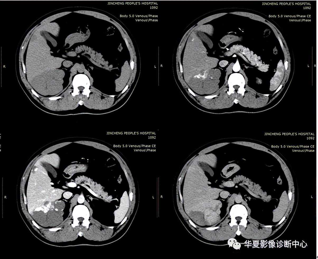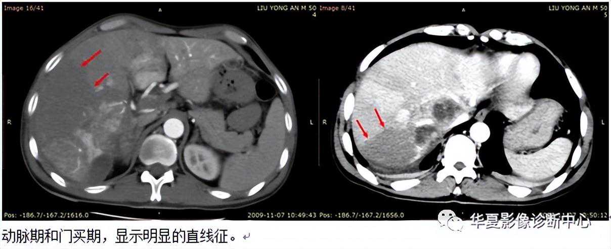 1)肝细胞癌,CT增强缺乏延迟强化征,其典型表现为快进快出,即动脉期造影剂迅速强化,门静脉期造影剂迅速消退;