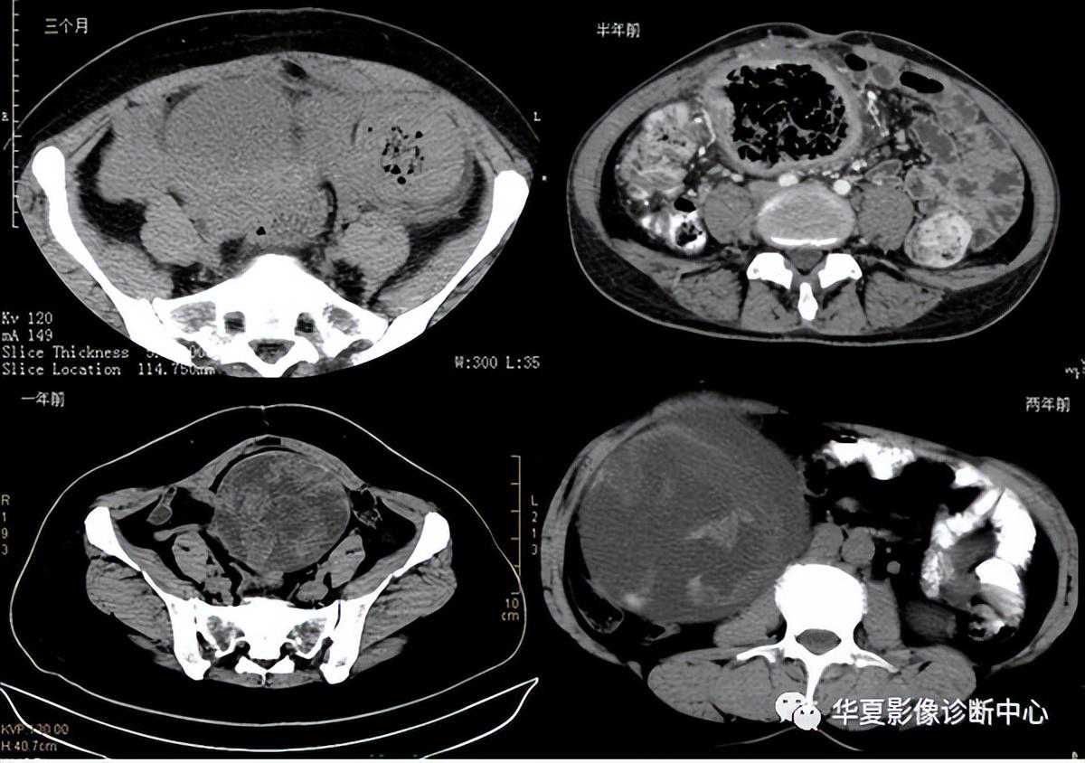 纱布瘤的影像特点是:圆形或卵圆形肿块,较大,有完整包膜,薄壁,较少的情况下为后壁,边界较完整,增强后薄膜可以持续强化。不同时期的纱布瘤可以不同的表现:早期(如10各月或半年前)的多表现为蜂窝状;2~5年内一般表现为囊性飘带状;10~20年之后则为实性软组织密度,包膜钙化呈钙化性网状结构。手术过程中残留在人体内的医用纱布所形成的肿瘤样病变。以下是不同时期纱布瘤的表现: