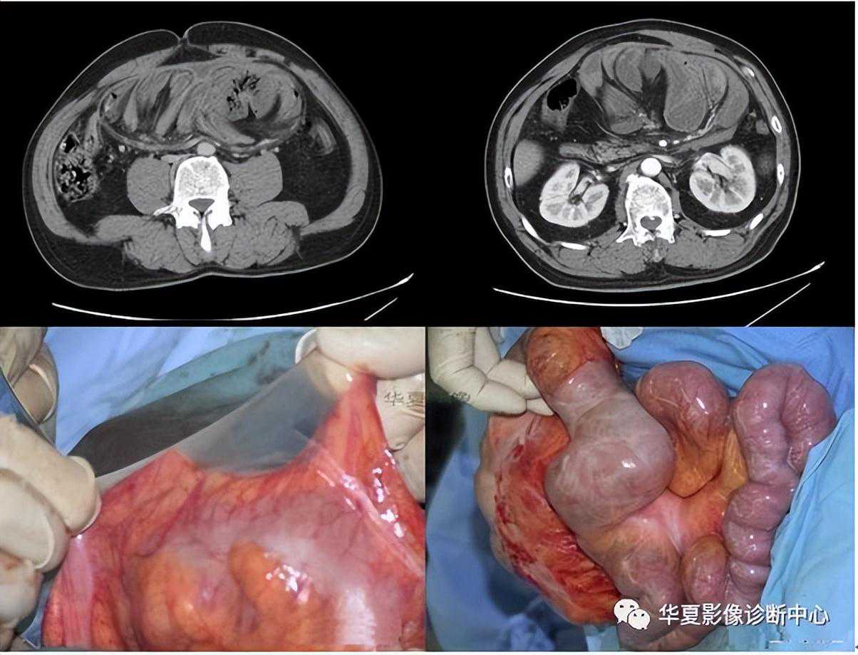 (3)硬化性腹膜炎:多发生于腹膜透析、腹腔化疗、腹部手术、肝硬化腹水及长期服用普拉洛尔等,全腹紧缩、质硬如板,腹膜壁层及全腹脏器广泛粘连,肠管间粘连紧密,难以分离。