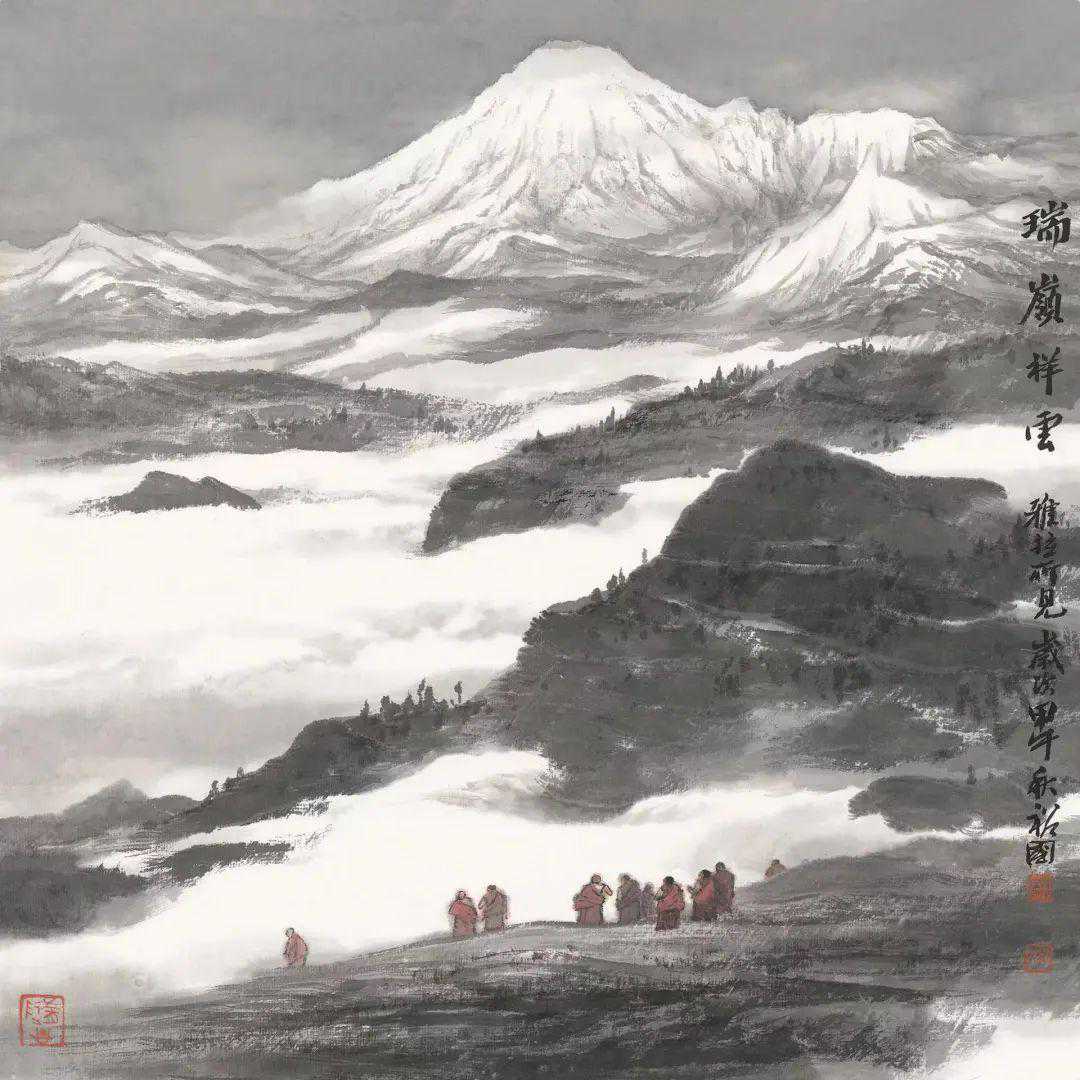 当前川西雪山画研究,从技法层面上来说,要画好雪山一是要处理好“黑与“白”的关系。白色,是雪山最基本的颜色。茫茫无际的雪原、万年不化的冰川、飘忽不定的白云以及笼罩在雪山之间的雾霭,都是以白色为原色的。如何表现雪山特有的“白”,这在以水墨为基本元素的中国画里,是极为讲究且最具艺术与技法含量的。而西域雪山的“白”与南、北方山水之间云雾的“白”是两种截然不同的客体,因而表现雪山特有的“白”便成为重要的突破点。在画面中不需要画,但却要重点表现,因此需预留恰当的位置。而“黑”则是为“白”服务的,不需要重点表现,但又必须将墨色经营妥当,否则,“雪”将无所依存。二是必须运用“光”。在画雪山的时候,要非常注重光在画面上的应用与变化。光是雪山的自然“相貌”之一,也是雪山给人以独特的美感的重要要素。在光的表现上,不能简单引入西方绘画的技法,而是更多地将中国传统的“阴阳”、“虚实”观念用于表现雪山之形貌。