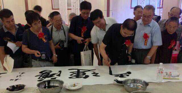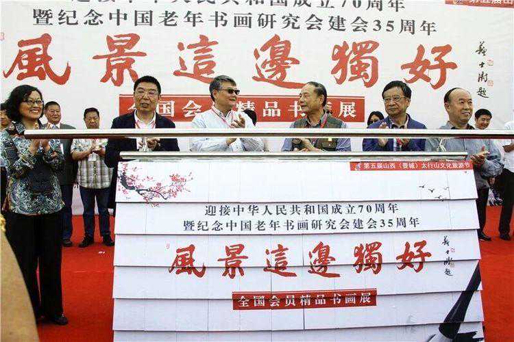 中国老年书画研究会名誉会长:王云坤、常务副会长:王吉、中国书画收藏家协会会长:崔陟、山西老年书画家协会主席:阎文崑在全国书画精品展开幕仪式