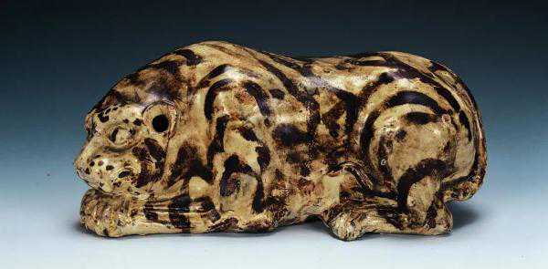 古人以虎形作枕,体现了崇虎的习俗。虎形枕始烧于唐,流行于北宋和金代。