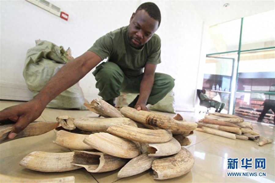 1月29日,在位于坦桑尼亚达累斯萨拉姆的自然资源与旅游部大楼内,一名工作人员整理待拍卖的河马牙。坦桑尼亚保护野生动物管理局29日在坦桑尼亚最大城市达累斯萨拉姆公开拍卖3.5吨河马牙,此举遭到动物保护组织的反对,认为这会导致针对河马的盗猎行为。新华社发