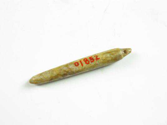 锥形器:是良渚文化最常见而又富有特征的玉器,往往一墓多器。体形分为方锥形和圆锥形两种,部分断面方正如琮,并饰有简练的神人兽面像。锥形器大部分都集中发现于头部,有的尖端全部顺同头向,也有的双双并列,尖端相互交错。也有小部分散布在墓室两侧。由此看来,这类器物不止一种用途。