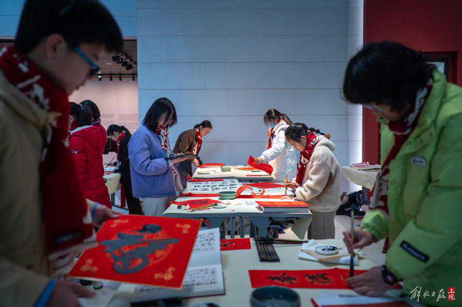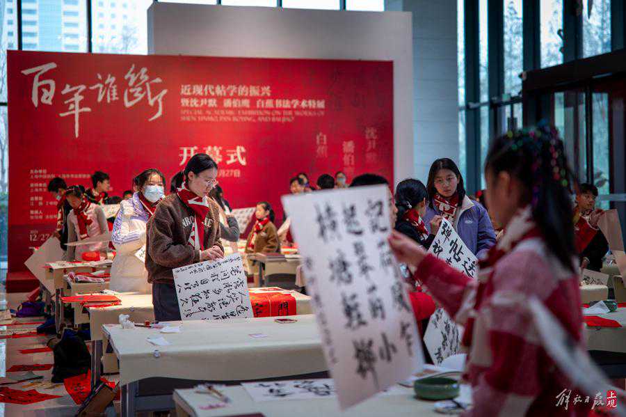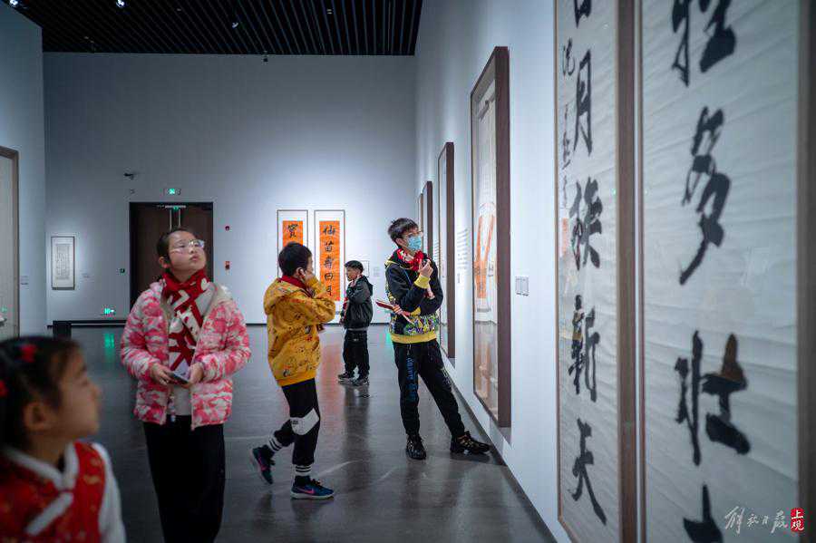 同时,“百年谁断——近现代帖学的振兴暨沈尹默、潘伯鹰、白蕉书法学术特展”于近日开幕,小书法家们现场挥毫的作品一方面与新春内容有关,另一部分则取材于此次展览书法家的作品临摹,体现海派书法艺术代代相传。