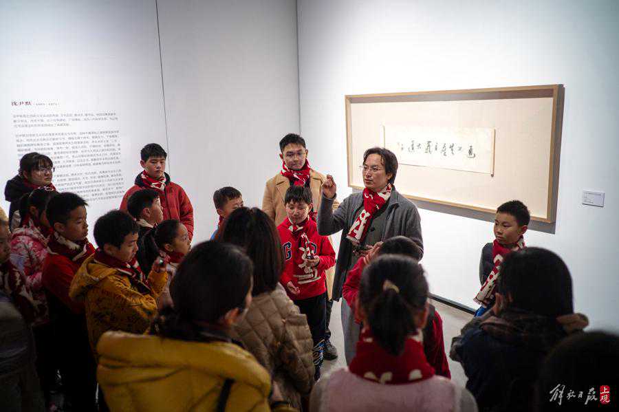 接着,“百年谁断——近现代帖学的振兴暨沈尹默、潘伯鹰、白蕉书法学术特展”的策展人张恒烟带领小朋友们走进展厅,上一堂生动的书法课。