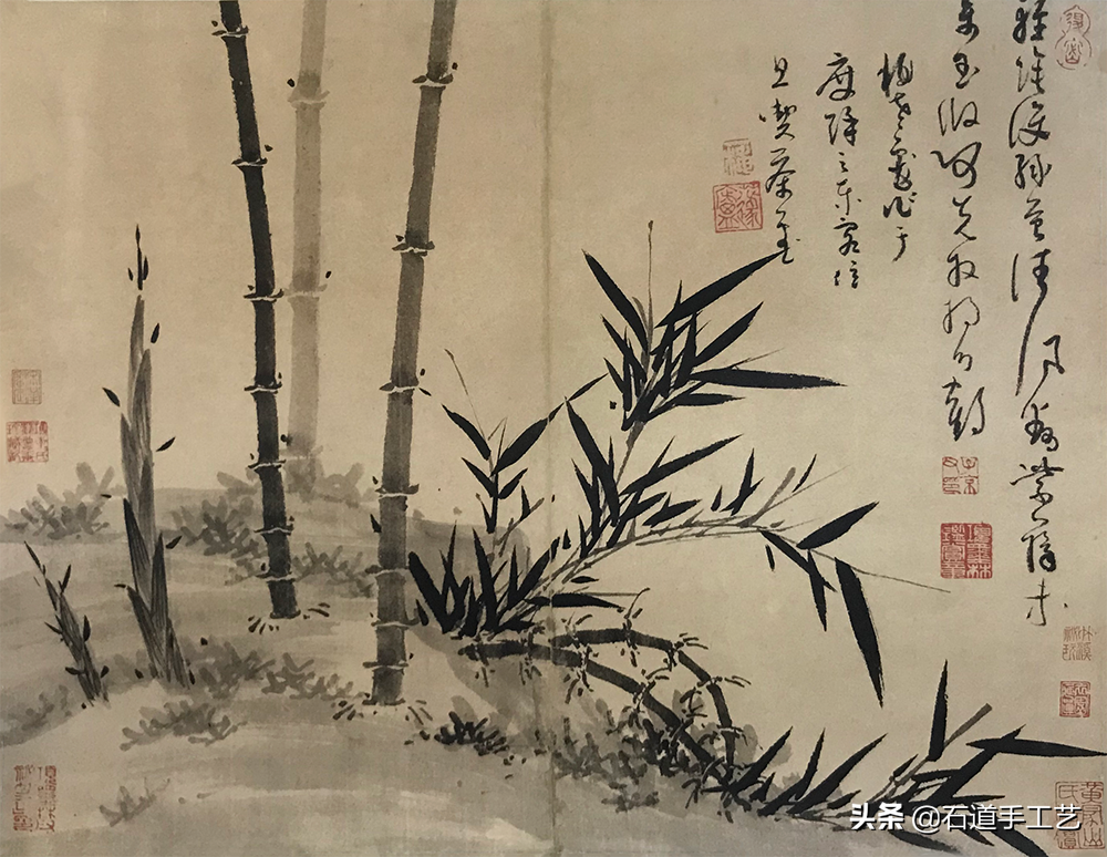 吴镇山水学巨然,为后世留下许多山水画名作,墨竹宗文同,俱臻妙品。这册为其子而画,诸态悉备,可谓墨竹画之集大成。每幅均见其识语,从中可领略吴镇书法之风采。