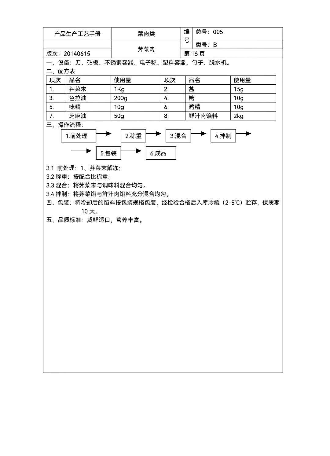原料储存和处理:采购回来的原材料需要经过适当的储存和处理,以确保其质量和卫生。例如,肉类需要经过检验、清洗和切割等处理,蔬菜也需要经过清洗和处理。